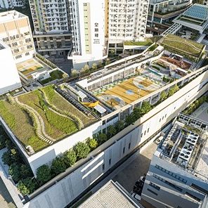 The site is surrounded by green belt to the east and south-east. The thirteen domestic blocks sit in the natural landscape among low-density local villages, with Lung Shan in the south serving as its backdrop. The design takes advantage of the adjoining green and rural environment to create a neighborhood with a strong sense of community which satisfies the social and physical needs of the residents.